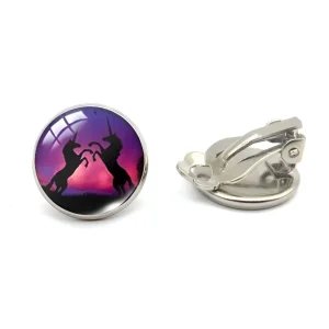 Boucles d’Oreilles Licorne Fille Couleur Violet (clip)