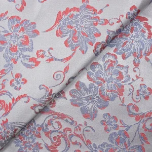Brocart Sylvia lie de vin et bleu fond gris bleuté
