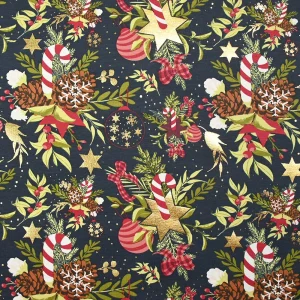 Jersey de coton imprimé la magie de Noël fond marine