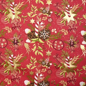 Jersey de coton imprimé la magie de Noël fond rouge