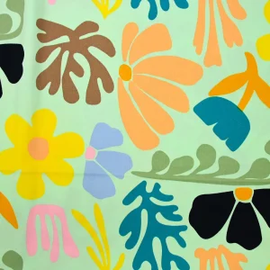 Satin de coton élasthanne feuille sauvage fond moutarde