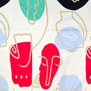 Satin de coton imprimé frises turquoise et jaune fond noir