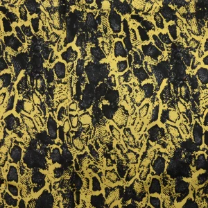 Satin de soie imprimé cobra gris fond jaune
