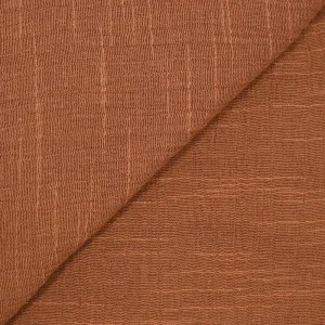 Tissu composé de coton au tissage toile serré et fin. C’est un tissu très fin, de poids léger, avec un peu de tenue, avec une belle brillance et très agréable à porter. Ce tissu a un aspect un peu flammé très joli.