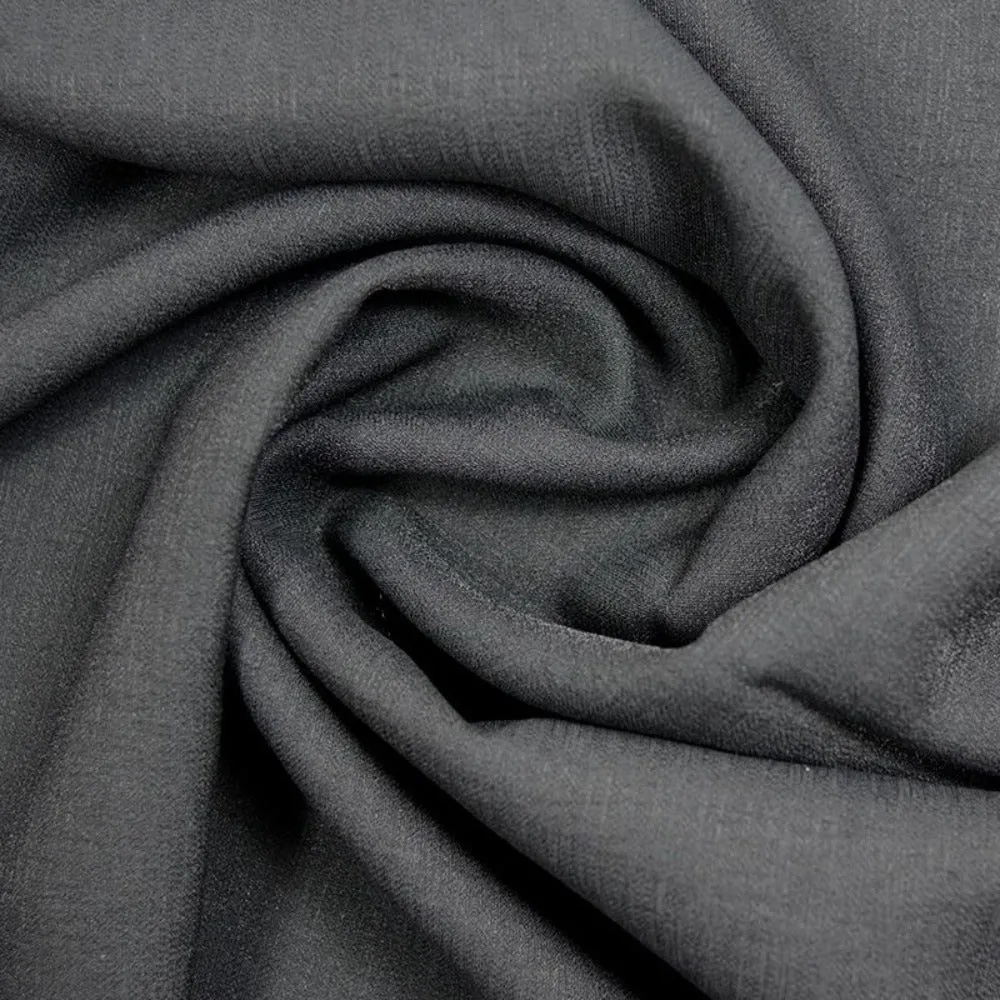 C’est un tissu crêpe composé principalement de viscose avec un peu de nylon. Il est souple, fluide, pas trop lourd et résistant avec un tissage original marqué par des petites irrégularités, il est également légèrement froissé comme le lin ou la double gaze.