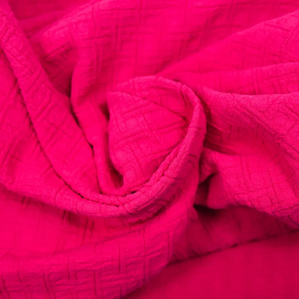 Jacquard de coton à carreaux fuchsia