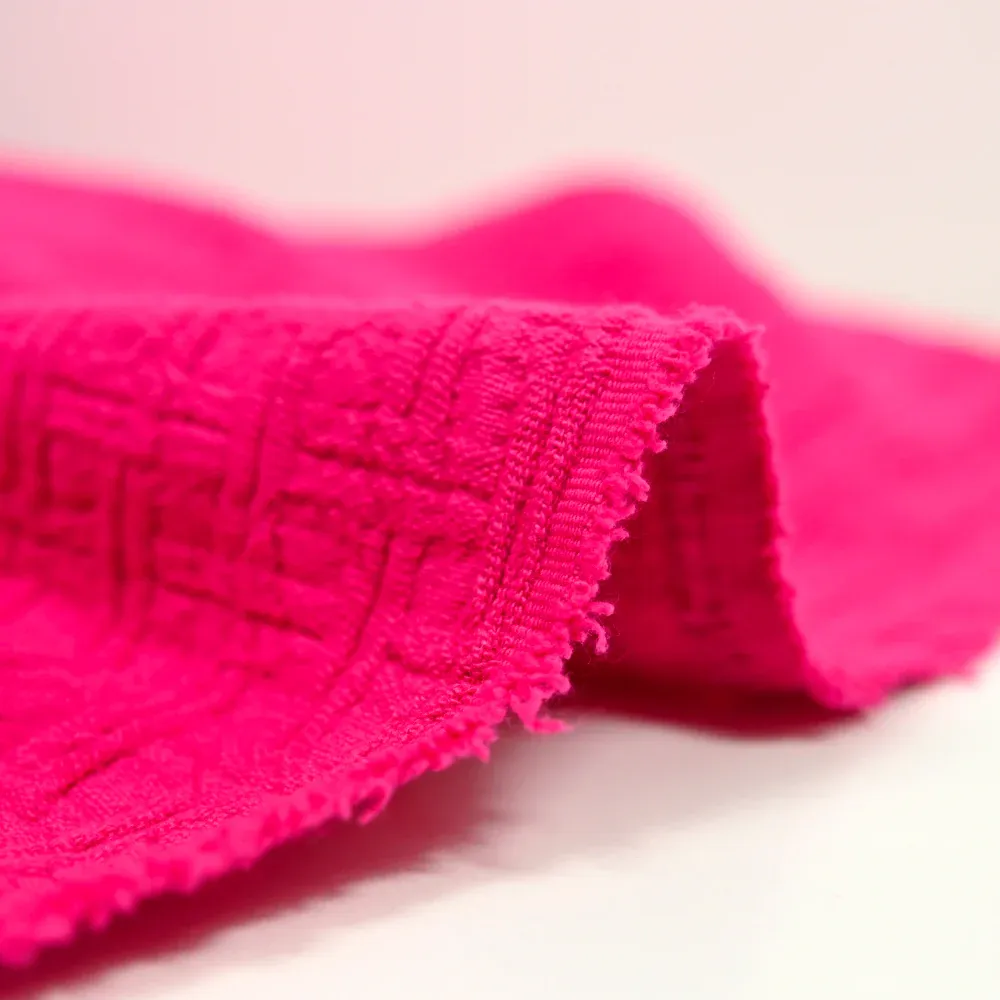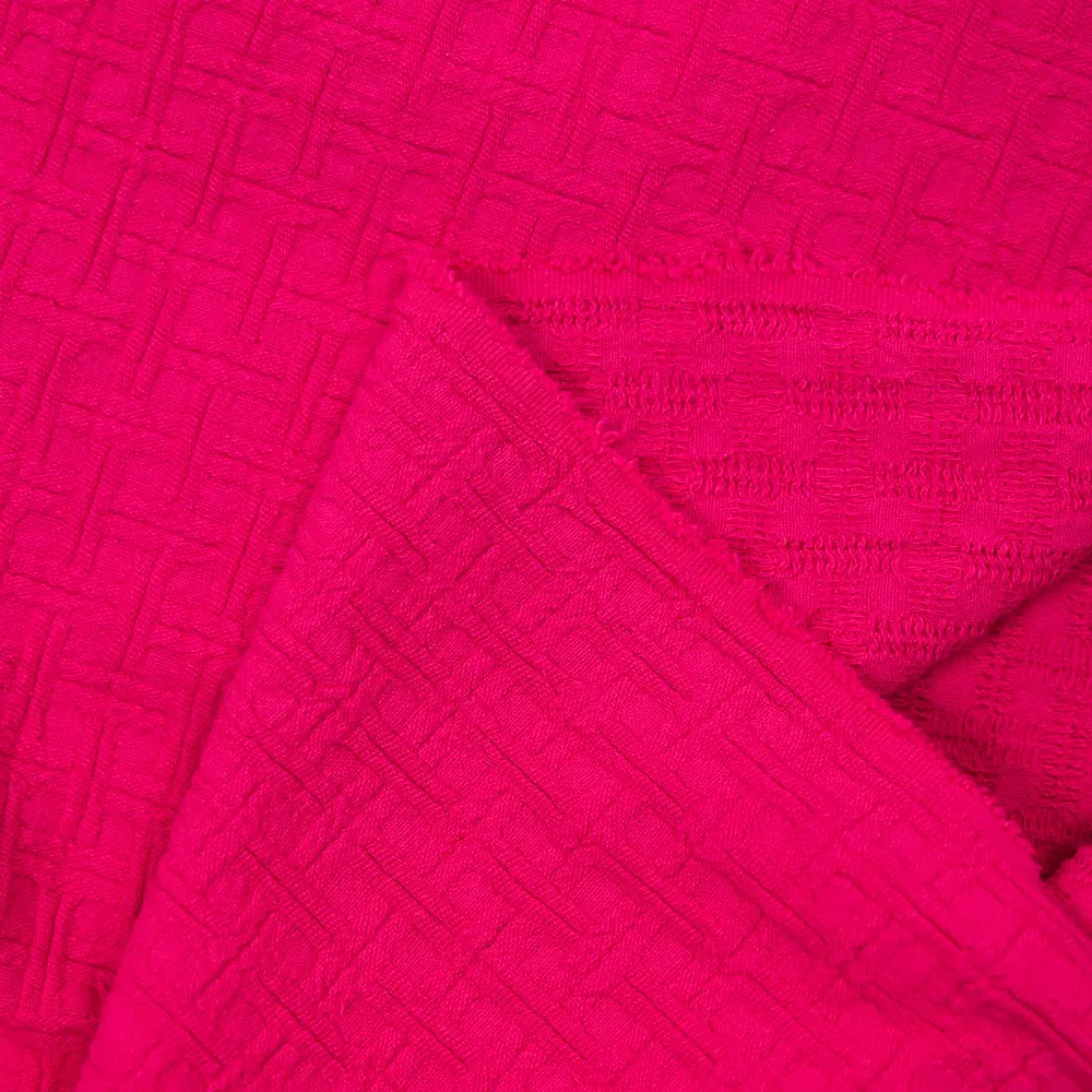 Composé de coton, ce tissu apporte du relief avec joli motif style jacquard. C’est un tissu souple au toucher texturé.