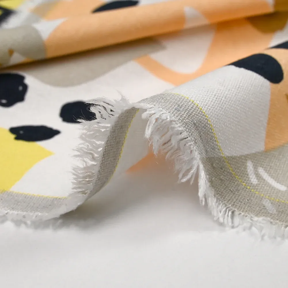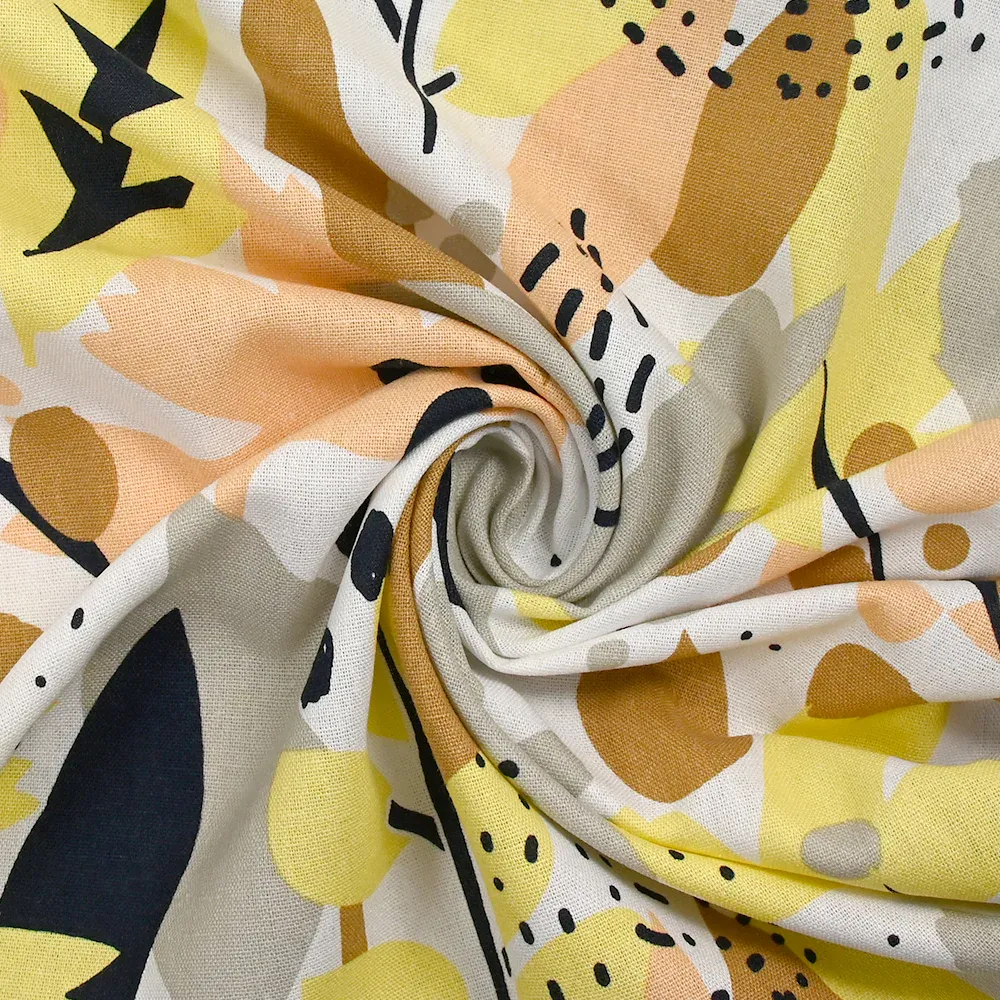 Lin viscose imprimé nature abstraite jaune fond blanc