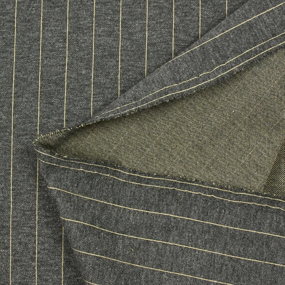 Maille polyester rayée beige fond gris