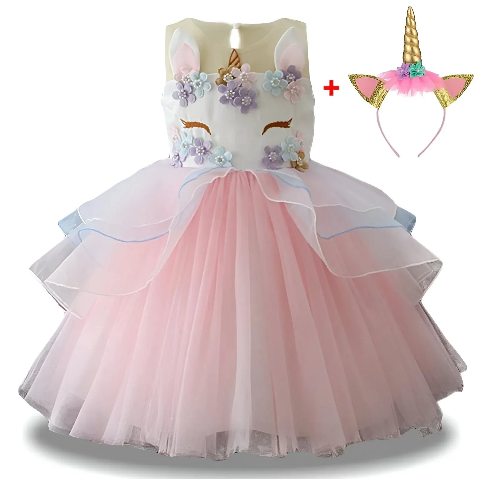 Offrez à votre petite fille une expérience enchantée avec cette magnifique robe de licorne pour une fête d’anniversaire mémorable. Une adorable licorne souriante ornée de belles fleurs brodées embellit l’avant de la robe pour veiller sur elle.