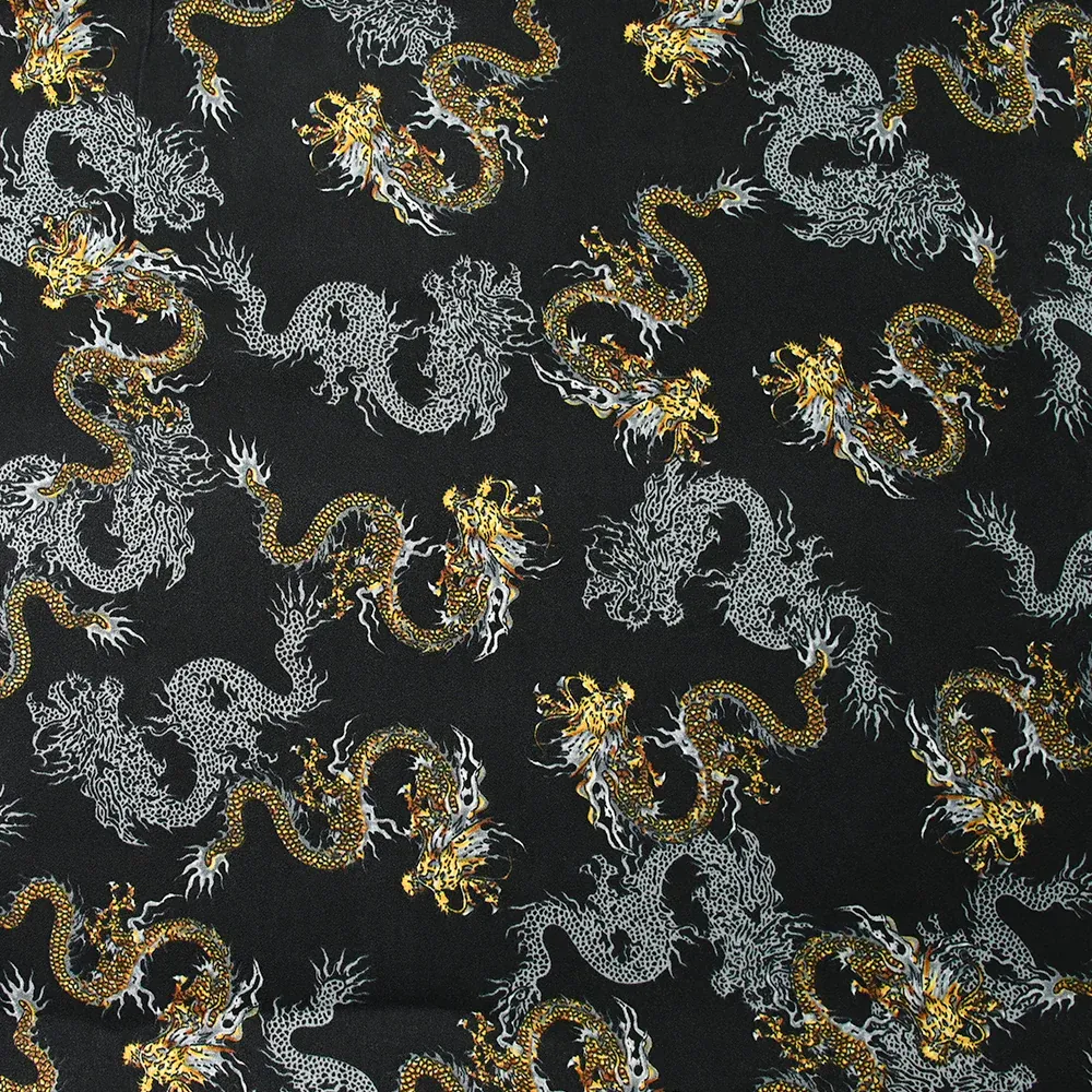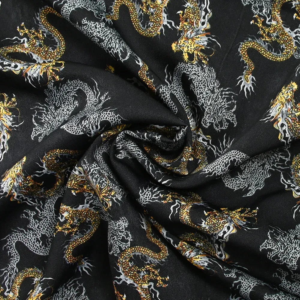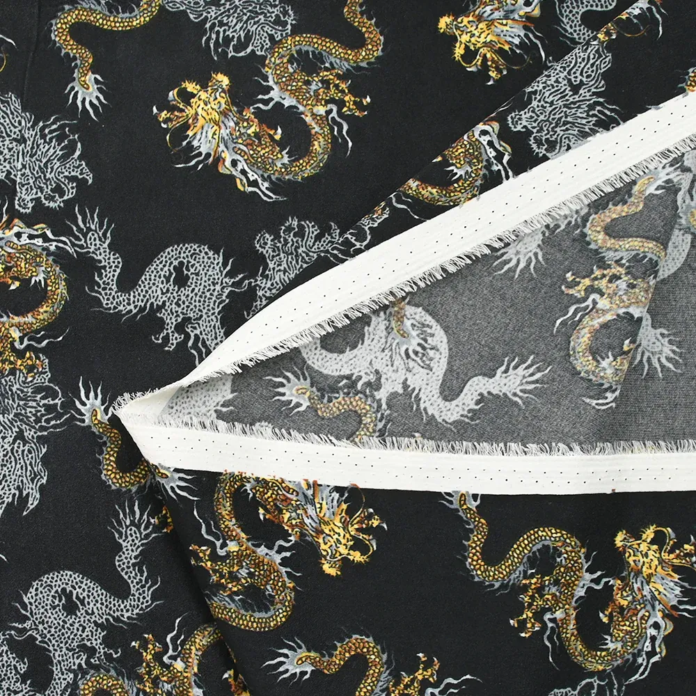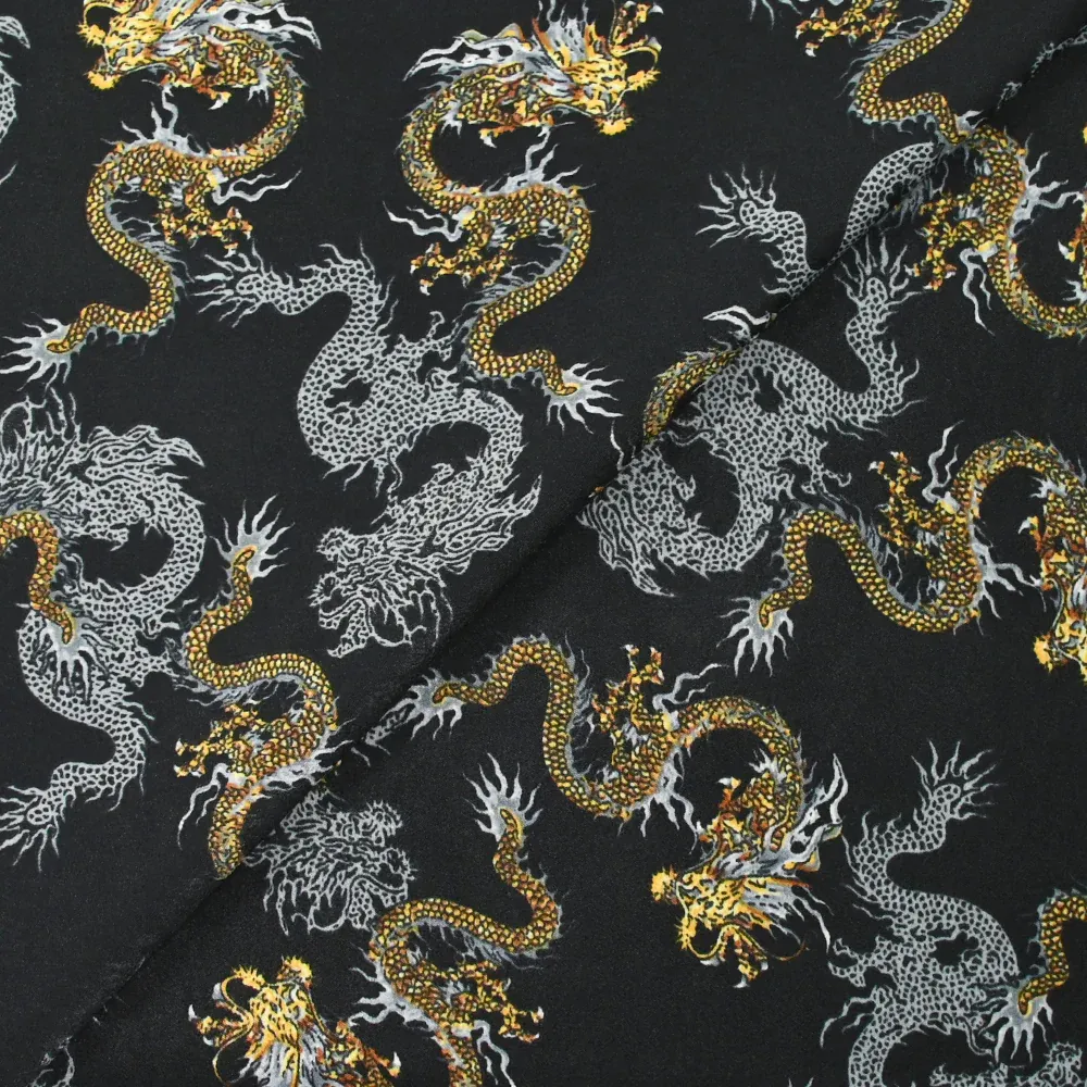 Satin de polyester mat imprimé serpent jaune et gris fond noir