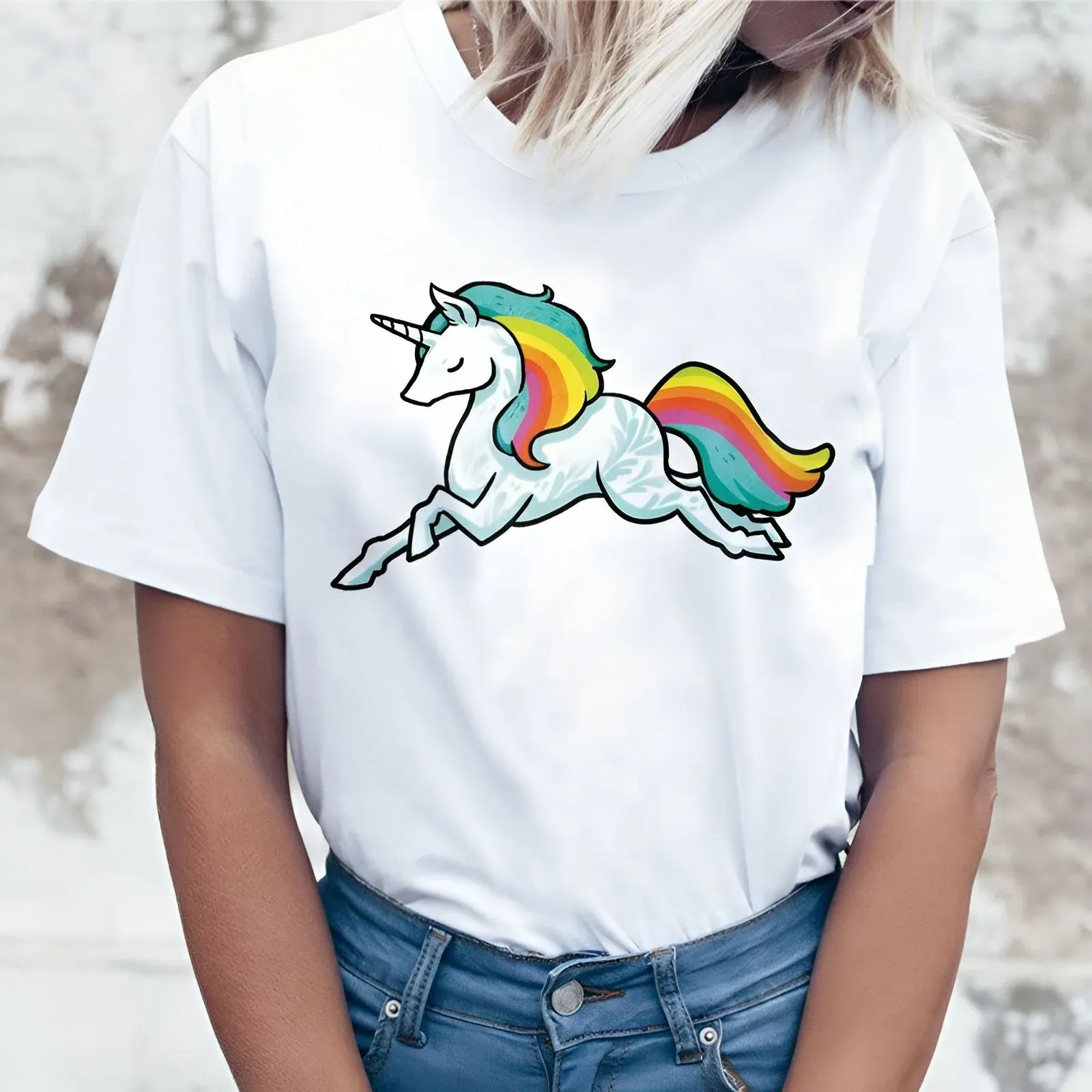 Un T-shirt licorne élégant pour exprimer votre style unique, avec un imprimé capturant la grâce et la beauté de cet animal mythique. À associer avec un jean et des baskets pour une allure décontractée chic ou une jupe pour un style sophistiqué. Un must-have pour tous les amoureux des licornes, offrant confort, style et originalité.