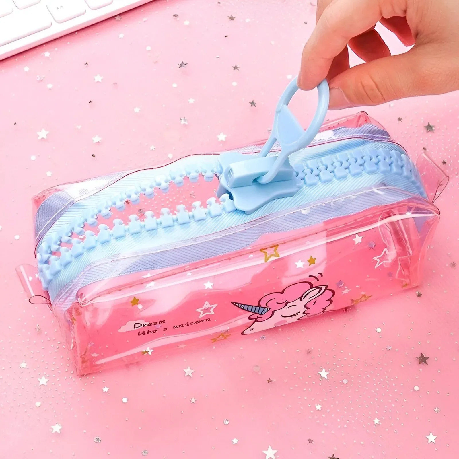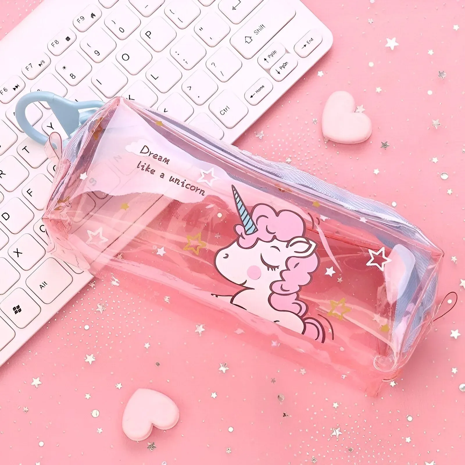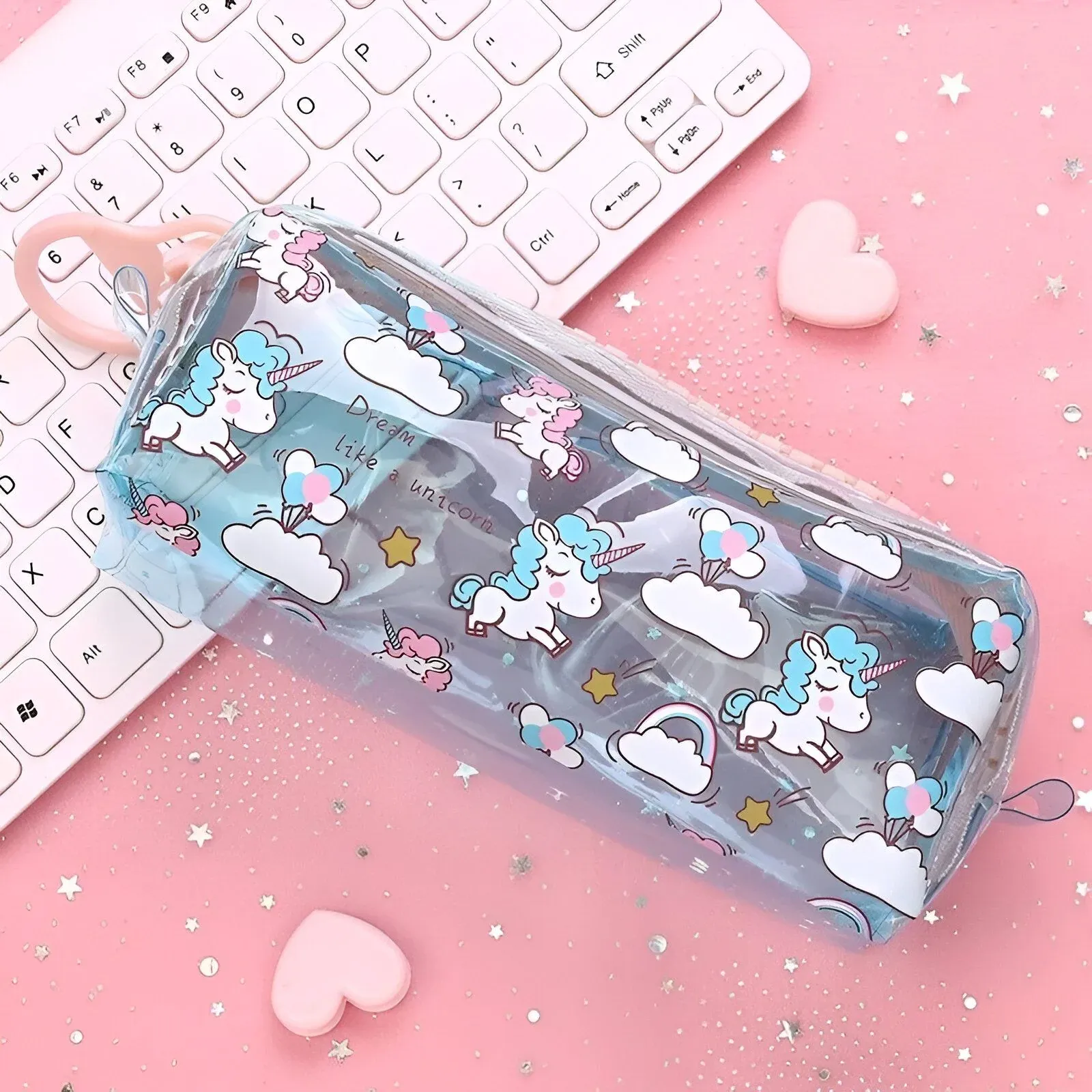 La trousse licorne transparente est un accessoire incontournable pour les enfants rêveurs. Avec son motif licorne et sa couleur transparente, elle est à la fois charmante et pratique pour ranger les fournitures scolaires et autres objets personnels.