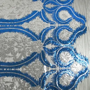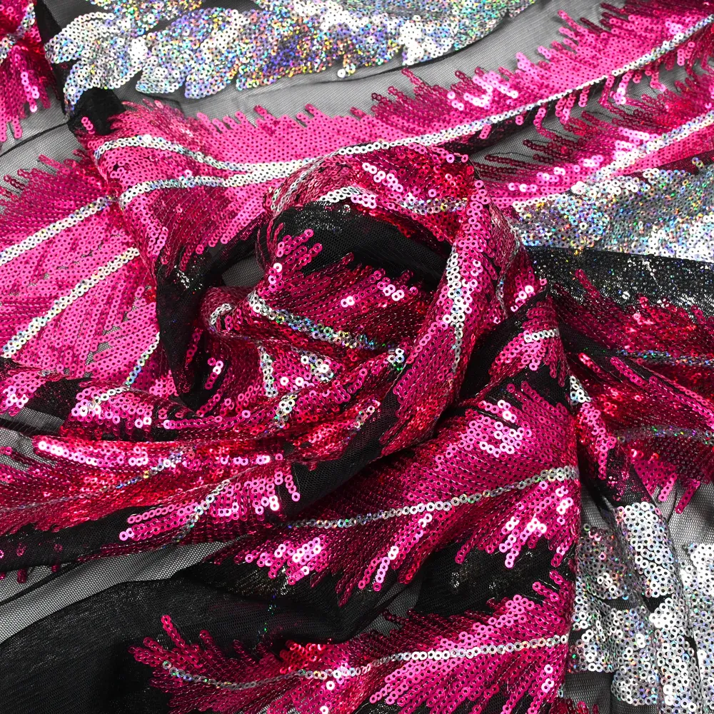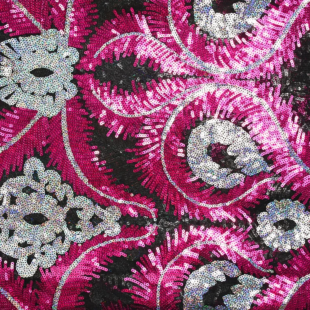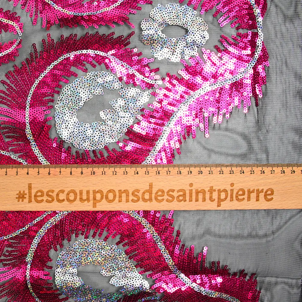 Le motif est très grand. Les sequins utilisés sont argent holographique et fuchsia. Le dos des sequins est de couleur argent.