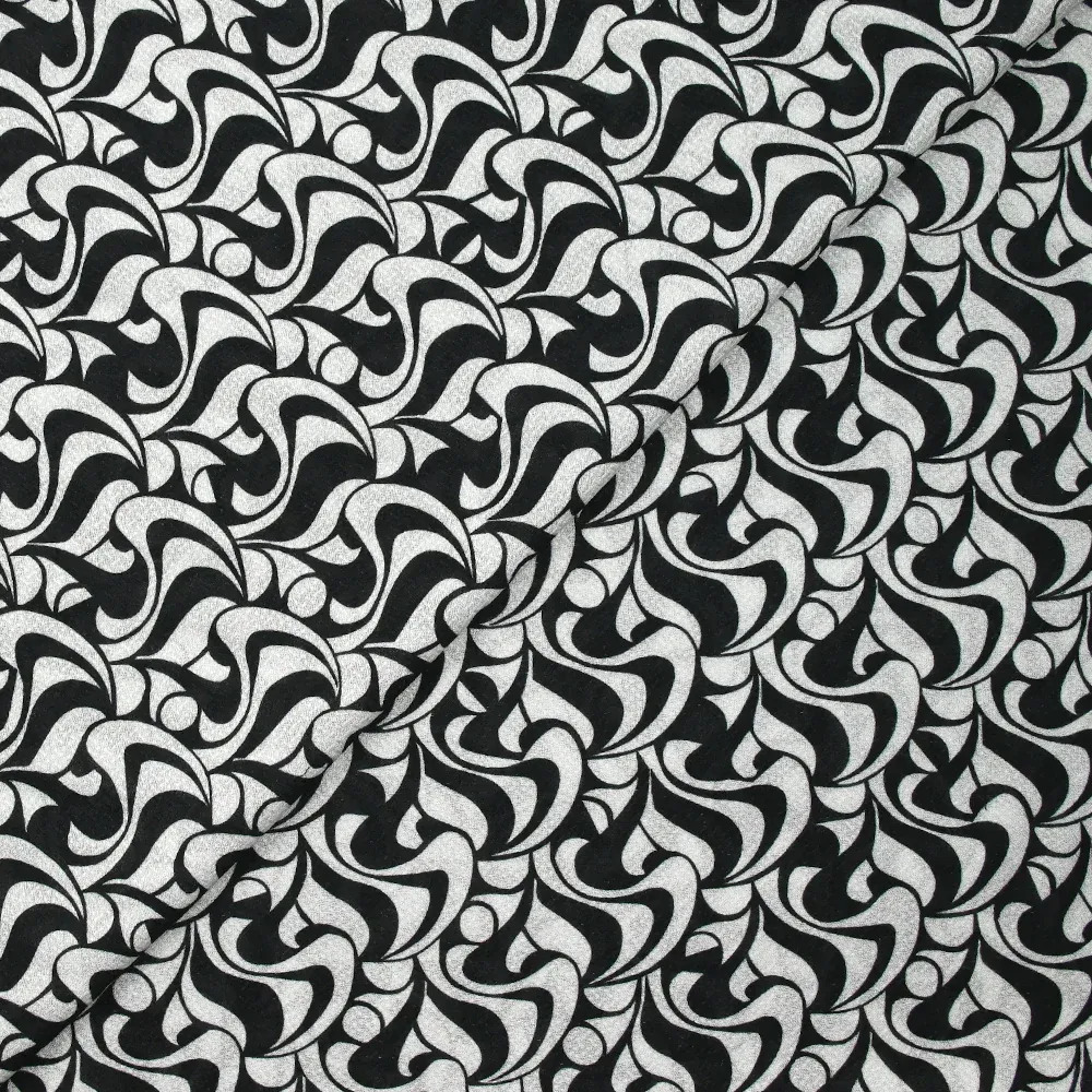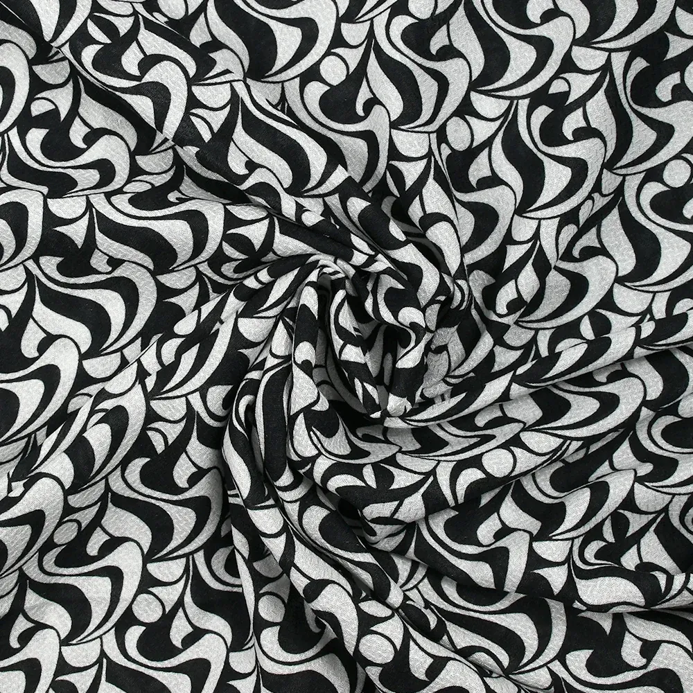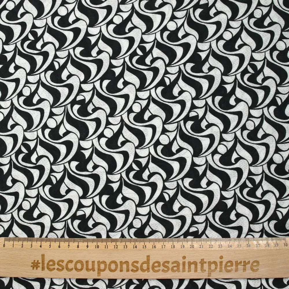 Voile de viscose satiné imprimé écume noir et blanc