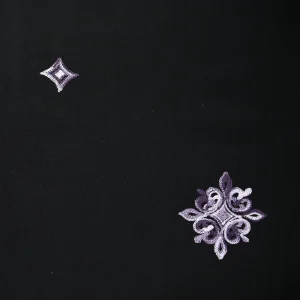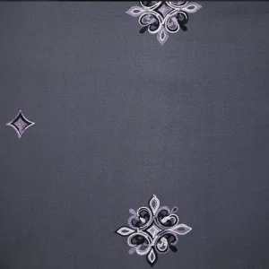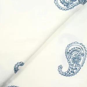 Crêpe viscose brodé cachemire irisé bleu fond blanc