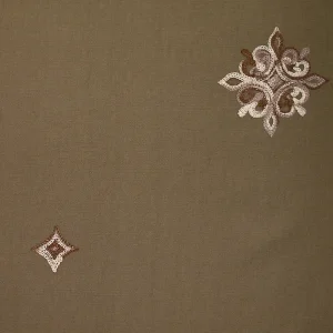 Crêpe viscose brodé cachemire irisé écru fond kaki