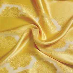 Satin de Soie ocre bandes de jacquard tissées dorées