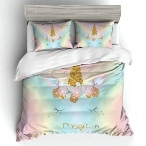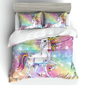 Housse de Couette Licorne Couleur Arc-en-Ciel