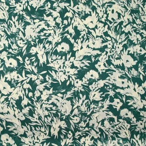 Mousseline crinkle satinée imprimée fleurs en négatif écru fond vert canard