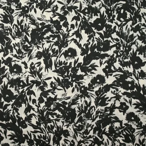 Mousseline crinkle satinée imprimée fleurs en négatif noir fond écru