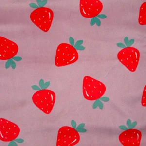 Jersey de velours nicky imprimé fraise fond vieux rose