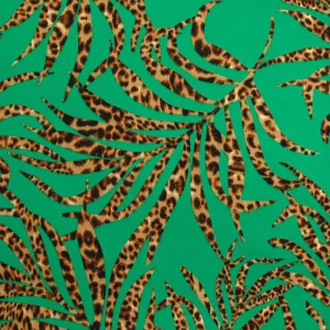 Satin de coton élasthanne feuille sauvage fond moutarde