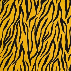 Satin de coton élasthanne imprimé tigres fond moutarde