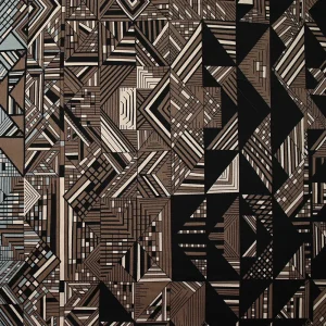 Satin de coton élasthanne fin imprimé variété graphique marron et gris bleu