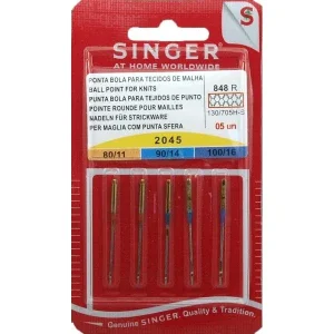 5 Aiguilles pour tissus fins n°9 / 70 , de la marque Singer, vendu sous blister.