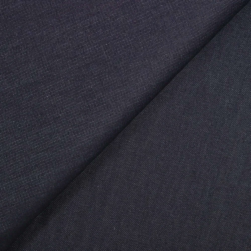 Jean’s composé de coton de couleur bleu nuit. Tissu de poids moyen, souple et très résistant.