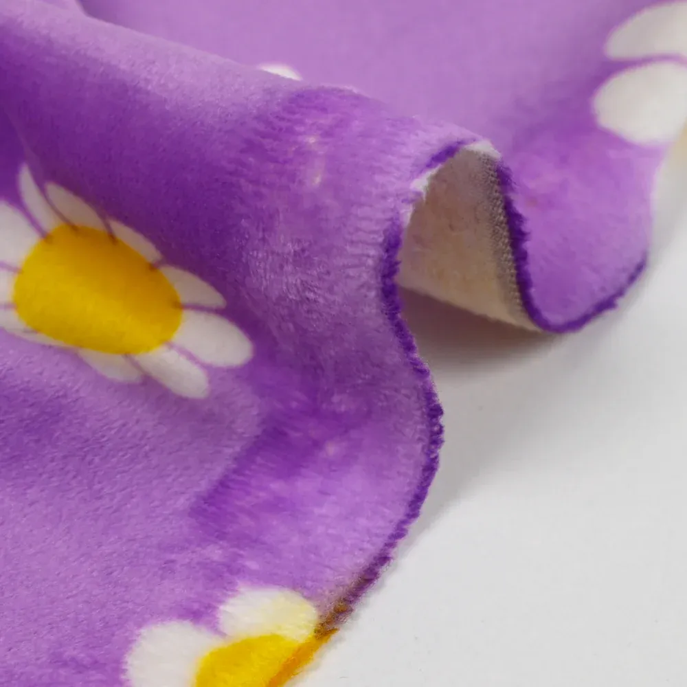 Tissu composé de polyester et de spandex. Pas trop lourd, extensible, doux et agréable à porter. Pour vos nombreux projets créatifs, profitez de douceur, de chaleur et d’un confort incomparable grâce à notre tissu en jersey de velours nicky. Son poids le rend idéal pour vos tenues d’automne et d’hiver. Il est recouvert de marguerites sur fond violet.