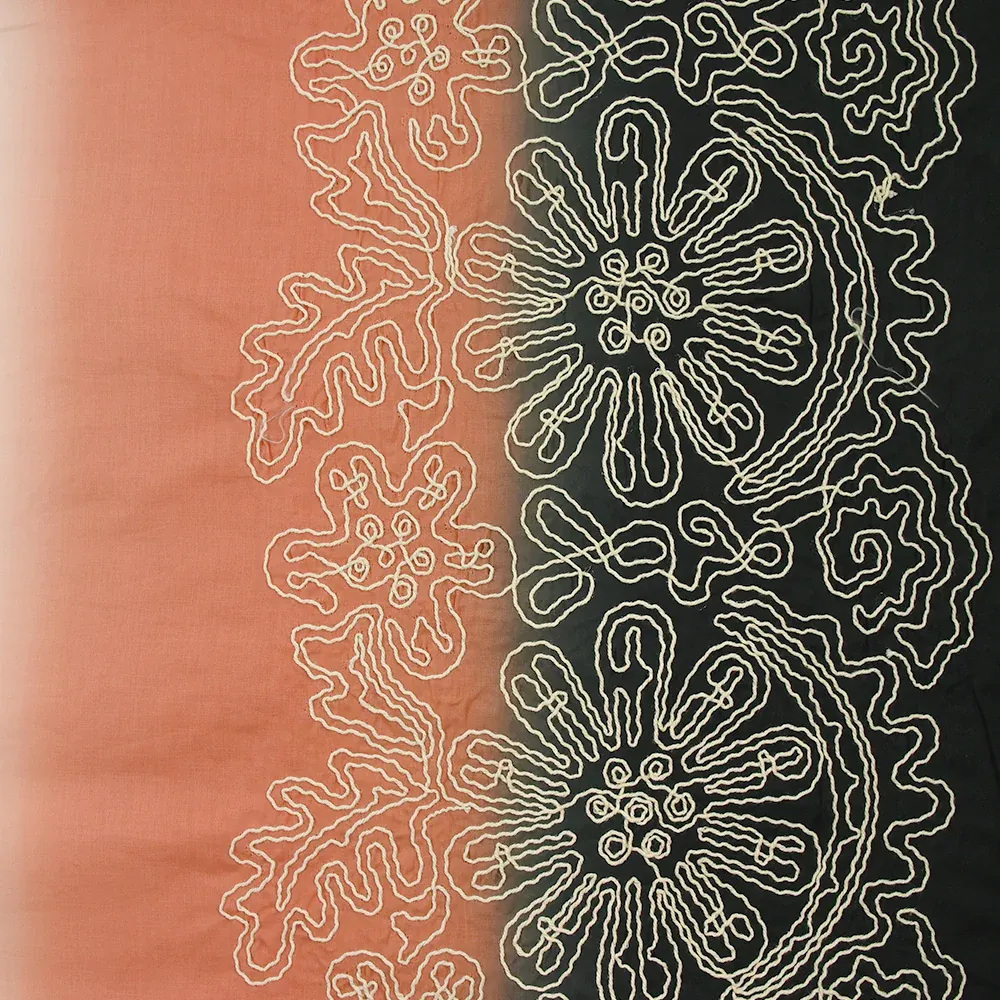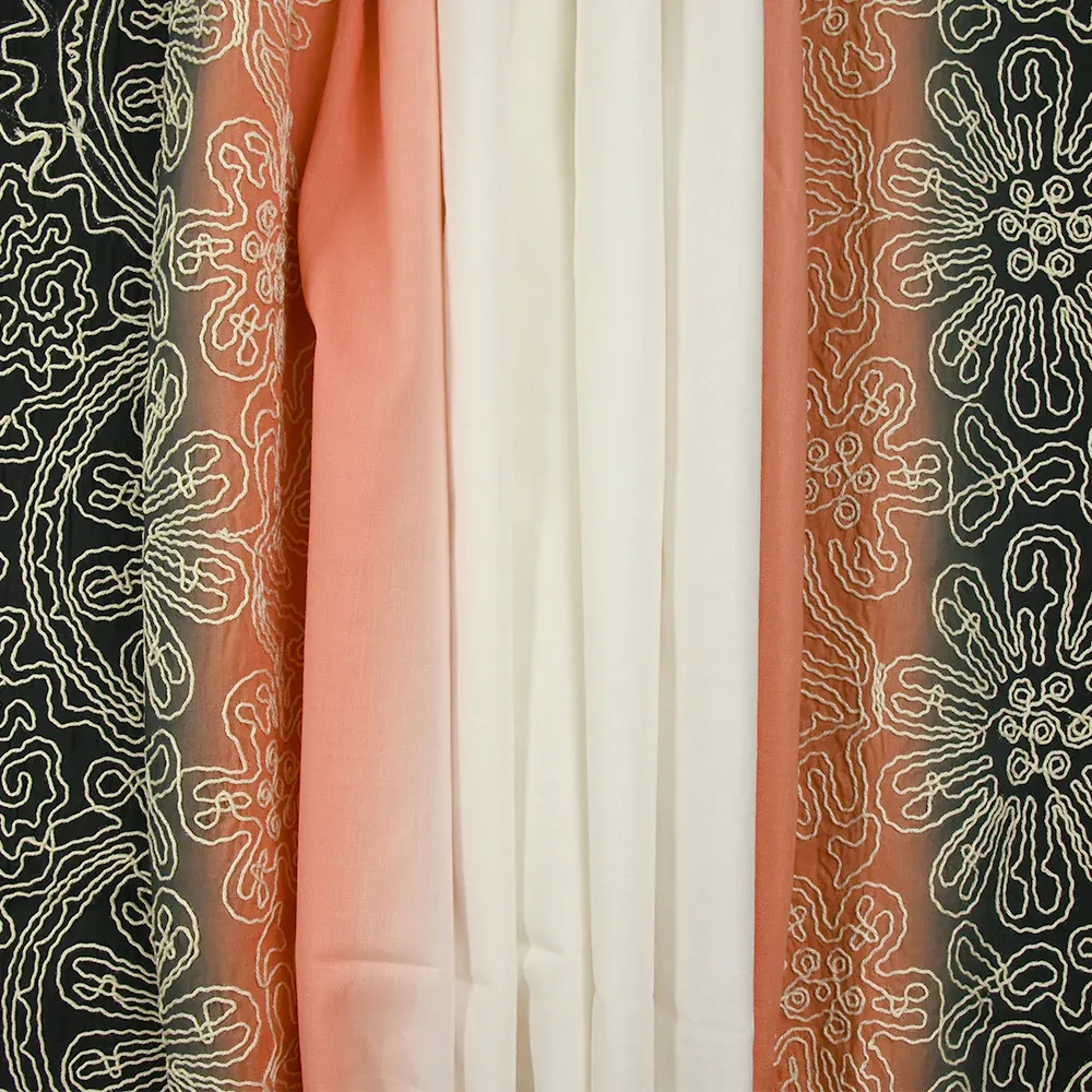 Voile de coton brodé dégradé noir, blanc et pêche