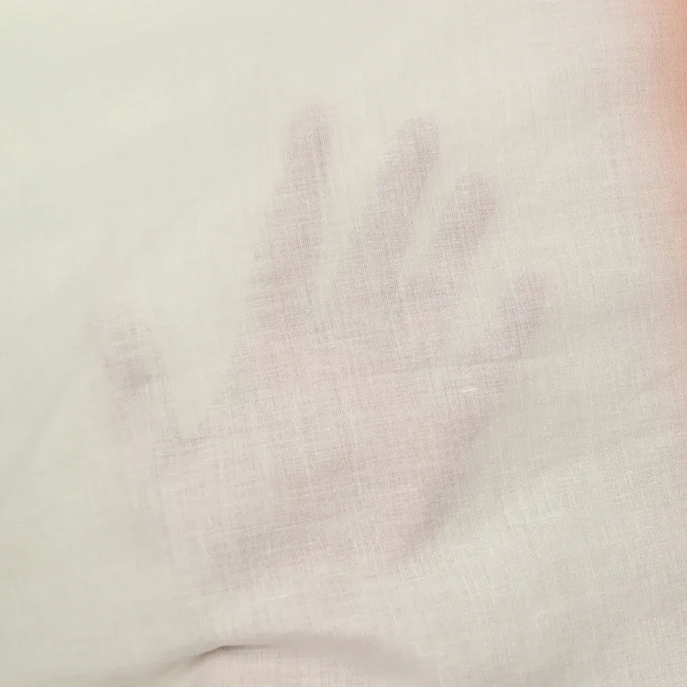Voile 100% coton de super qualité avec un motif brodé sur les deux laizes. La broderie est réalisée avec un fil plutôt épais. C’est un tissu fin, léger et souple avec de la transparence.